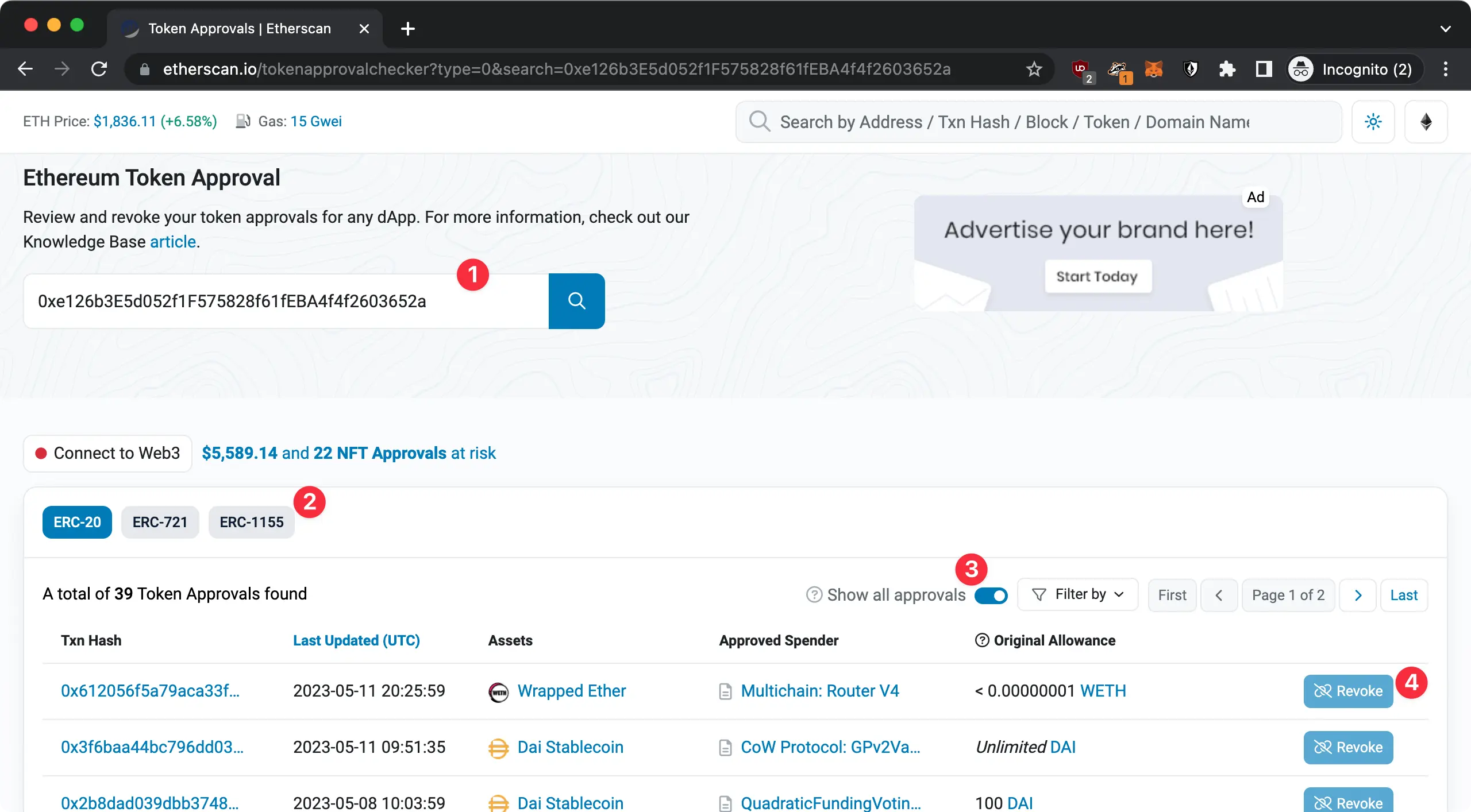 - Connect Your Wallet or Enter an Address: Simply connect your wallet or enter an address, and it will immediately display all of your token approvals.